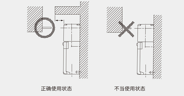 使用開關(guān)時,應(yīng)于上方設(shè)置-擋板,以防止鑰匙過于插入使機(jī)構(gòu)損壞。而擋板與開關(guān)間a之距離應(yīng)在3mm以下,以防止不動作。