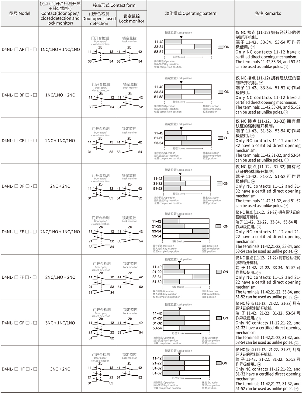 E: 2NC/1NO (慢動接點) + 1NC/1NO (慢 動接點)