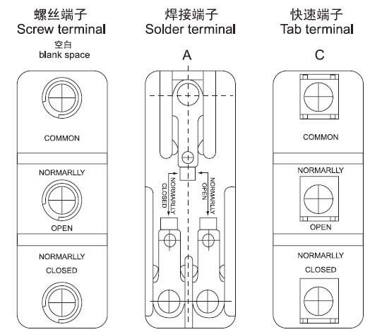 ■型號后面加A則為焊接端子,加C則為快速端子,空白則為螺絲端子